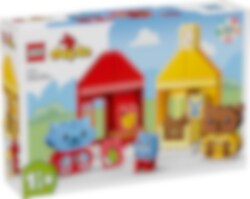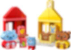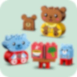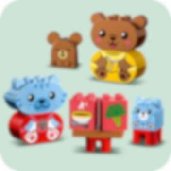 LEGO® DUPLO® Mijn eerste dagelijkse gewoontes – eten en slapen helpt je peuter het belang van dagelijkse gewoontes te begrijpen. Dit kleurrijke educatieve speelgoed bevat 2 dierenfamilies – een kat en haar kitten en een beer met zijn jong – die aan het eten zijn en zich klaarmaken om naar bed te gaan. De jonge dieren hebben elk een vrolijke en een verdrietige gezichtsuitdrukking om peuters te helpen hun gevoelens rond deze activiteiten te uiten.