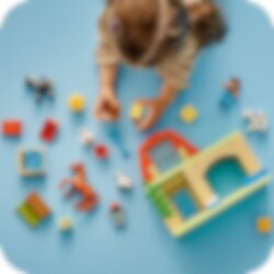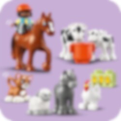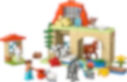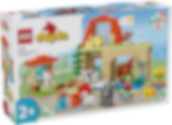 Ken je een peuter die dol is op boerderijen? De set Dieren verzorgen op de boerderij (10416) is een ideaal cadeau voor elke kleine dierenliefhebber. Dit educatieve speelgoed wordt geleverd met 8 LEGO® DUPLO® dierenfiguren – waaronder figuren van paarden, een schaap, koeien en kippen – voor peuters vanaf 2 jaar die dol zijn op doen alsof en graag nieuwe vrienden maken op de boerderij. Deze speelgoedboerderij boordevol functies laat gezinnen opgaan in verzorgend spel, terwijl volwassenen hun kindje laten zien hoe ze de dieren kunnen voeden en verzorgen. De boer helpt de kinderfiguur met het afspoelen van de appels om aan de koe en haar kalfje te voeren. In het kippenhok zorgt de kip voor haar kuikens. Peuters kunnen ook doen alsof ze een ritje maken op de paardenfiguur en hem hooi voeren in de stal. Dit educatieve speelgoed bevat kleurrijke bouwstenen en elementen die interessant zijn voor peuters en tijdens het bouwen hun probleemoplossend vermogen en fijne motoriek versterken.