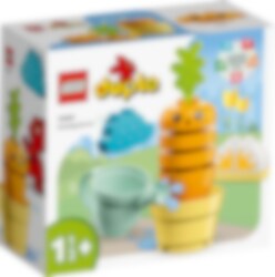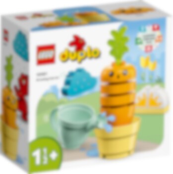 Peuters zullen veel plezier beleven terwijl ze leren wat gezond eten is en hoe planten groeien met de LEGO® DUPLO® Mijn eerste groeiende wortel (10981) educatieve speelset. Deze kleurrijke set is ontworpen om peuters vanaf 18 maanden kennis te laten maken met duurzaamheid terwijl ze voor de wortel zorgen en de stenen stapelen om hem te laten groeien. Geef ze de verantwoordelijkheid om het weer te bepalen met de zon- en regenwolkstenen, zodat het plantje krijgt wat het nodig heeft. Als de plant wel wat hulp kan gebruiken, kunnen kinderen hem water geven met de gieter. Uit de verbaasde blik op het gezicht van de wortel blijkt dat het water best koud was! Educatief speelgoed dat leren leuk maakt Al het LEGO DUPLO speelgoed is deskundig ontworpen met leuke verhaallijnen, vrolijke kleuren, boeiende personages en veel details om fantasierijk spelen aan te moedigen en jonge kinderen vroeg vaardigheden aan te leren.