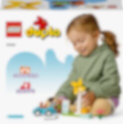 LEGO® DUPLO® Stad Windmolen en elektrische auto (10985) set laadt de speeltijd van peuters op met creatief plezier. Deze compacte set bevat een oplaadstation, een 'elektrische' auto, een moersleutel en figuren van een monteur en een eekhoorn en leert peuters vanaf 2 jaar op een toegankelijke, begrijpelijke manier over de echte wereld en duurzaam leven. Creatief speelplezier voor nieuwsgierige kinderen Er zijn allerlei manieren om peuters vanaf 2 jaar bezig te houden. Ze kunnen aan de windmolen draaien om elektriciteit op te wekken en vervolgens de auto aansluiten op het oplaadpunt. Bovendien kunnen ze in de rol van monteur stappen om de auto of de turbine te repareren. De schattige eekhoorn geeft de moersleutel aan als ze hulp nodig hebben. Boeiend speelgoed LEGO DUPLO speelgoed helpt kinderen spelenderwijs de wereld om hen heen te verkennen, zodat ouders en kinderen samen op een geweldige ontdekkingsreis kunnen gaan.