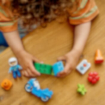 Laat de kleintjes politie spelen en door de stad rijden op de motor! De LEGO Duplo blauwe politiemotor (10471) heeft grote, gemakkelijk hanteerbare stenen en bevat een politiefiguur, een motor, verkeerslichten en pionnen om mee te spelen. Perfecte eerste bouwset voor kinderen vanaf 2 jaar. Dit cadeau voor kleine kinderen bevat een speelgoedmotor die 5 cm hoog, 9 cm lang en 4 cm breed is.
