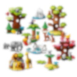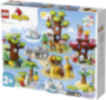 LEGO® DUPLO® Wilde dieren van de wereld (10975) bevat talloze dieren in hun natuurlijke leefomgeving. De set zit boordevol authentieke details en leerzame speelmogelijkheden voor kinderen vanaf 2 jaar. Een wereld vol dieren om te bouwen en te ontdekken Neem jouw peuter mee op een wereldreis langs alle 7 continenten! Ontdek panda's in Azië, leeuwen in Afrika, herten in Europa, een alpaca in Zuid-Amerika, een beer in Noord-Amerika, een koala in Australië, pinguïns op Antarctica... en nog veel meer! Een geweldig cadeau voor kinderen die van de natuur houden, inclusief een geluidssteen die (dieren)geluiden laat horen en een opvouwbare speelmat van de wereld. Spelenderwijs leren voor peuters LEGO DUPLO sets zijn vakkundig ontworpen met leuke verhaallijnen, vrolijke kleuren, diverse personages en vele details om jouw kleine leerling een GROTE start in het leven te geven.