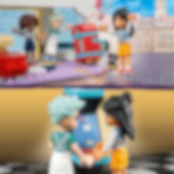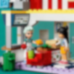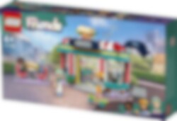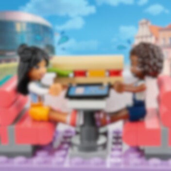 Kinderen vanaf 6 jaar kunnen allerlei verhalen naspelen met deze LEGO® Friends Heartlake restaurant in de stad (41728) bouw- en speelset. Met de vele accessoires kunnen ze doen alsof ze broodjes bereiden of bestellen als klant. De set bevat een drive-through, zitplaatsen buiten, een speelautomaat en een bewegende jukebox. Kinderen kunnen de ingrediënten in de koelkast gebruiken om broodjes te maken. Andere accessoires zijn 2 drankjes, geld, 3 boterhammen, een servethouder, een prullenbak en een skateboard. Er is zelfs een ondeugende kat die graag het restaurant bezoekt! Voor nog meer bouwplezier Maak je op voor een eenvoudig en intuïtief bouwavontuur met de LEGO Builder app. Hiermee kunnen kinderen inzoomen en hun modellen draaien in 3D, sets opslaan en hun voortgang bijhouden. Welkom bij de volgende generatie in Heartlake City Kinderen kunnen vrienden maken en leuke locaties ontdekken in het LEGO Friends universum, waar ze creatief spelen en levensechte avonturen naspelen.