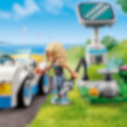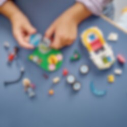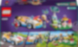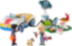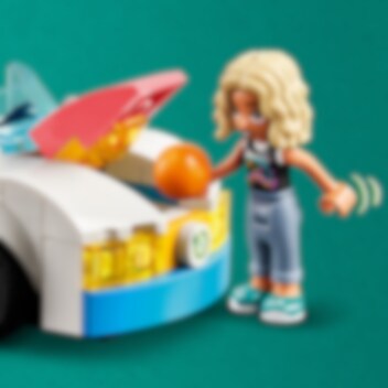 Stimuleer fantasierijke avonturen met het LEGO® Friends Elektrische auto en oplaadpunt (42609) voertuigspeelgoed voor meisjes, jongens en kinderen vanaf 6 jaar. Deze autobouwset bevat een 'oplaadpunt', 2 personages, accessoires en een hondenfiguur. Kinderen kunnen naspelen hoe Zac en Nova samen lunchen bij het oplaadpunt. Via het mondstuk kunnen ze de auto op het oplaadpunt aansluiten. De auto heeft zitplaatsen voor de minipoppetjes en voor Dango de hond. Het model beschikt ook over een motorkap die open kan met ruimte om accessoires op te bergen. Bij het laadstation staan een tafel en 2 krukken waar Zac en Nova kunnen picknicken en er zijn voer- en waterbakken voor Dango. Deze bouwset voor kinderen is leuk speelgoed of een cadeau voor een speciale gelegenheid voor kinderen die van rollenspelavonturen houden. Laat de LEGO® Builder app je kind begeleiden op een intuïtief bouwavontuur waarbij het kan inzoomen en modellen in 3D kan draaien, sets kan opslaan en de voortgang kan bijhouden.