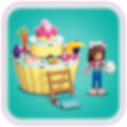 Ga met Gabby en Cakey de keuken in om cupcakes te bakken! Meng de ingrediënten in de kom en plaats deze in de schattige kattenoven. Vervolgens kun je een gigantische taart versieren met smakelijke lekkernijen. Cakey gebruikt een ladder om de bovenkant te bereiken. Als je klaar bent, draai je het bovenste deel van de taart rond om je creativiteit te bewonderen!