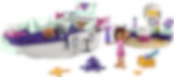 Maak een boottocht met Gabby met aan boord een heerlijk zwembad en een leuke glijbaan waarmee je zo de zee in glijdt! Vaar naar het strand, laat Meerminkat Gabby vertroetelen met haar speciale brouwsels en geef Gabby een nieuw kapsel!