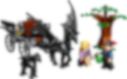 Betreed samen met Harry Potter en Loena Leeflang het Verboden Bos en zie daar een volwassen Thestralis die met haar jong tussen de bomen op zoek is naar voedsel! Word vrienden met de mysterieuze gevleugelde dieren door ze een appel en een stuk vlees te geven. Span daarna de volwassen Thestralis voor het rijtuig en maak een ritje van Zweinstein™ naar Zweinsveld™ en weer terug!