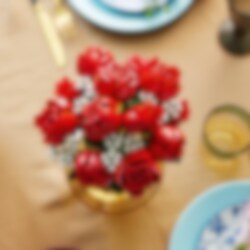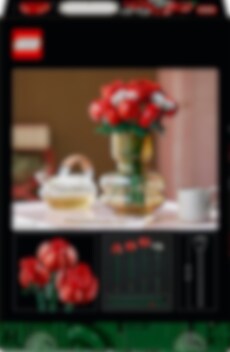 Verwen jezelf of geef een geliefde een romantisch cadeau met het LEGO® Icons Rozenboeket, ideaal voor Valentijnsdag of een speciale gelegenheid. Dit prachtige boeket om zelf te bouwen bevat een dozijn rode rozen en 4 takjes gipskruid. Geniet van een ontspannende bouwervaring terwijl je elke bloem bouwt, voordat je de bos in je favoriete vaas plaatst om een tijdloos display voor thuis of op kantoor te creëren.