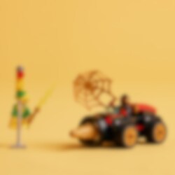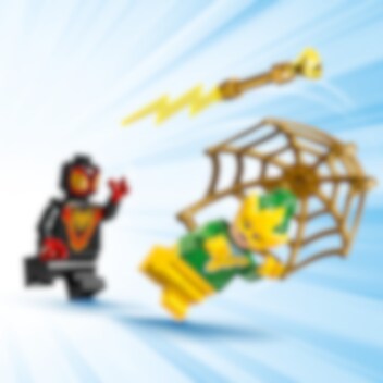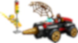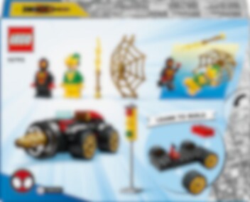 Electro raakt een verkeerslicht met een stroomstraal om elektriciteit te stelen! Spin reist vliegensvlug naar hem toe in het geweldige LEGO® 4+ Drilboorvoertuig. De draaiende boor aan de voorkant zorgt ervoor dat niets hem in de weg staat! Als Spin een gigantisch, gouden web over de schurk gooit, is het Electro's beurt om een schok te krijgen!