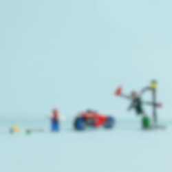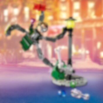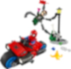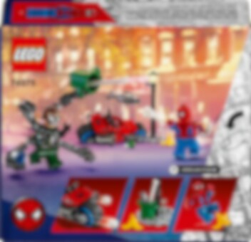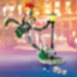 Een Venom versie van Doc Ock ontsnapt met gestolen diamanten! Spider-Man springt op zijn motorfiets en vuurt zijn schieters af terwijl hij de schurk met extra ledematen achtervolgt. Doc Ock zwaait aan een straatlantaarn en gooit een bananenschil naar de motor. Een andere arm gooit een vuilnisbak in het pad van Spider-Man en nóg een andere arm bereidt zich voor om dynamiet te gooien! Zal Spidey terugvechten en de juwelen redden in jouw LEGO® Marvel avontuur?!
