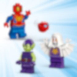 Green Goblin heeft Spidey's robotvriendje Trace-E gestolen! Hij ontsnapt in zijn zweefvliegtuig, maar Ghost-Spider vliegt achter de slechterik aan met een groot gouden web om hem te vangen. Spidey springt in zijn zweefspinner en racet over het wateroppervlak tijdens de achtervolging. Kunnen de helden Green Goblin vangen en Trace-E redden of worden ze omgegooid door de pompoenprojectielen? Bepaal het zelf met deze Spidey vs.Green Goblin actieset voor kinderen vanaf 4 jaar.