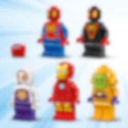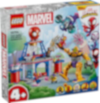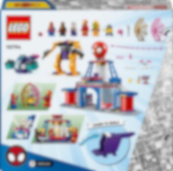 Help Spidey, Spin, Ghost-Spider en Iron Man met het bouwen van een webspinner hoofdkwartier. Maar laat Zola de pret niet bederven als hij in zijn gigantische mecha verschijnt. Hij grijpt Iron Man in zijn enorme handen! Spin springt op de mecha af met een gigantisch web om zijn vriend te helpen. Ghost-Spider vliegt de lucht in met haar zweefspinner en laat een roze web over Zola's robothulpje vallen! Met deze set beleven kinderen vanaf 4 jaar volop Team Spidey actie.