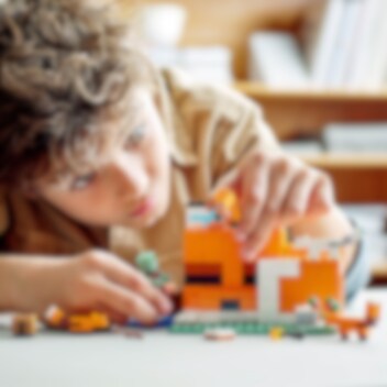 Dankzij verschillende coole personages, authentieke accessoires en eindeloze speelmogelijkheden is LEGO® Minecraft® De Vossenhut (21178) een ideaal cadeau voor kinderen vanaf 8 jaar. Een drukke dag bij het vossenhuis Kinderen zetten al hun Minecraft vaardigheden in om een huis te bouwen dat eruitziet als een slapende vos. Dankzij de open achterkant en het afneembare dak kunnen ze de meubels binnenin gemakkelijk verplaatsen en er allerlei fantasierijke rollenspellen spelen. Buiten vinden ze een jonge vos, volwassen vos en poolvos die ze bessen kunnen voeren voordat de dieren zich opkrullen om lekker te gaan slapen. Dan verschijnt er een verdronken zombie, een populair personage uit de game, om een heleboel chaos te veroorzaken. Kinderen moeten het gevaar afweren met een zwaard voordat ze hun hengel kunnen uitgooien en rustig genieten op hun visstek.