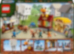Piglins vallen het dorp aan vanuit hun Ghast-ballon! Ze lanceren een schijf richting de fontein op het dorpsplein. Je hebt al je Minecraft® vaardigheden en de hulp van de ijzergolem nodig om de rest van het dorp te redden, inclusief Steve's gefrituurde kiprestaurant en craftinghut!