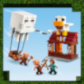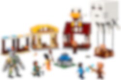 De Ghast-ballon aanval op het dorp (21273) is een videogamebouwset gebaseerd op een scène uit de Minecraft® film. Dit LEGO® Minecraft speelgoed voor kinderen biedt explosieve actie wanneer er een aanval wordt gelanceerd vanuit een ballon. Deze LEGO set met gamingthema is een geweldige cadeautip voor jongens en meisjes vanaf 10 jaar! De set bevat populaire personages uit de videogame: Steve, Natalie, Dawn, 2 piglins, een Ghast-ballon, een dorpeling, een kuiken en een verstelbare figuur van een ijzergolem. De ballon heeft ruimte voor de piglins en is voorzien van een schijfschieter. In het dorp staan marktkraampjes, Steve's gefrituurde kiprestaurant, zijn craftinghut en een fontein, die kinderen kunnen laten 'ontploffen' met behulp van eeningebouwde functie. Op het dak van het restaurant staat een groot kippenmodel met een leuke eierlegfunctie. Voor digitaal plezier kunnen kinderen de LEGO Builder app gebruiken om in te zoomen, modellen in 3D te draaien en hun voortgang bij te houden.