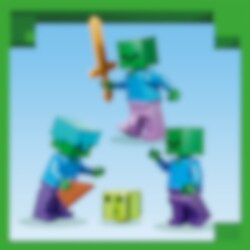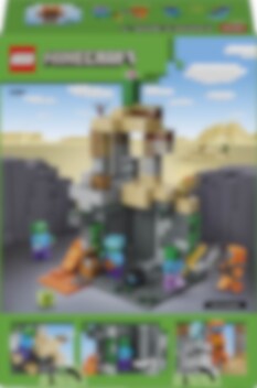 Ga de strijd aan met een horde Minecraft-zombies in de grot! De Zombiehol (21587) is een Minecraft-set vol grotactie in het woestijnlandschap. De Woestijnwandelaar, uitgerust met een diamanten bijl, knots en netherietuitrusting, ontmoet een slijmblok en drie zombies. Probeer de roterende kamer die zombies tot leven wekt en activeer de steenlawine met het glijdende mechanisme. 284 onderdelen. Aanbevolen leeftijd: 8+.