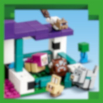 Zorg voor jonge dieren in de LEGO® Minecraft® Dierenopvang. Met 3 leuke gedeelten om te verkennen – een omheinde speelruimte met plek voor voedselopslag, een picknickplaats buiten en een knus tapijt waar vermoeide dieren kunnen uitrusten – zullen je gasten nooit meer weg willen! En met zo veel mobs kun je deze set ook gebruiken om andere LEGO Minecraft sets (apart verkrijgbaar) uit te breiden, zoals Het schildpadstrandhuis (21254).