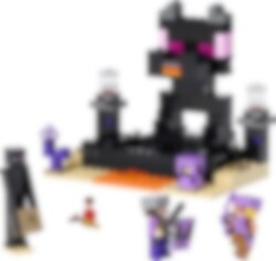 Minecraft® confrontaties zijn nog nooit zo spannend geweest als in LEGO® Minecraft De Eindarena (21242). Spelers vanaf 8 jaar zullen al hun Minecraft vaardigheden nodig hebben om de actie in deze leuke set te overleven. Duels en avonturen Een End strijder en een drakenboogschutter komen bij elkaar voor een confrontatie in de Eindarena. De strijders zijn uitgerust met harnassen en wapens, maar er zijn ook andere gevaren die ze moeten trotseren. Een druk op de knop schiet lavablokken uit de bek van het standbeeld van de Enderdraak dat boven de arena uittorent en de beweegbare vloer schuift uit elkaar om een poel van lava onder de voeten van de strijders te onthullen. Er zijn extra speelmogelijkheden met 2 bekende Minecraft mobs – een enderman en een shulker – en accessoires uit de game, waaronder een gouden wortel en een toverdrankje. Voor digitaal plezier heeft de LEGO Builder app intuïtieve zoom- en draaifuncties waarmee kinderen hun model kunnen visualiseren terwijl ze het bouwen.
