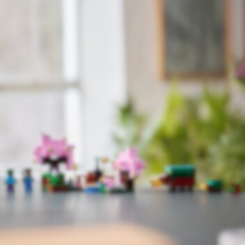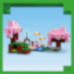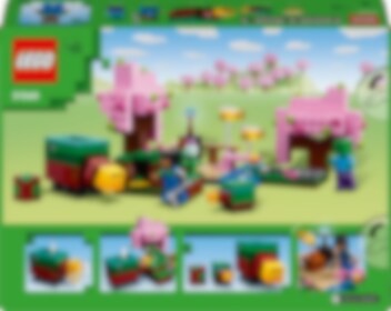 De kersenbloesemtuin (21260) is een praktische speelset uit de videogame en de eerste LEGO® set met figuren en onderdelen uit het Minecraft® kersenbloesembioom. Het is een geweldig cadeau voor Minecraft spelers en kinderen vanaf 8 jaar die genieten van natuur- en dierenspeelsets – en het graag opnemen tegen zombies! Dit is de eerste LEGO Minecraft speelset met het heldenpersonage Sunny. Kinderen helpen Sunny bij het verzorgen van de kersenbloesemtuin die uit 2 felgekleurde bomen, een bruggetje over een beekje en een zandtuin met een sierpot en zwartsteen bestaat. Er zijn 2 bijen, een volwassen Sniffer – een vriendelijke mob uit het spel – en een Baby Sniffer, plus een Sniffer-ei. Kinderen gebruiken de snuffelfunctie van de volwassen Sniffer om met zijn snuit een zeldzaam zaadje op te graven. Voor nog meer actie kunnen ze een vijandige zombie in de tuin afweren. Er is ook digitaal plezier als bouwers de intuïtieve LEGO Builder app gebruiken.