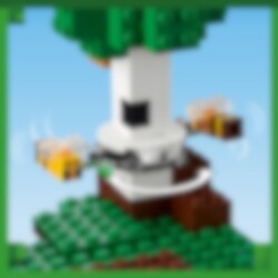 Verzamel honing uit een bijenkorf, verbouw gewassen op de boerderij en verdedig je basis terwijl je een huis in de vorm van een bij bouwt in dit leuke Minecraft® avontuur. Als de boze bijen die rond de boom vliegen besluiten om aan te vallen, haal je het dak van je bijenhuisje om binnen van nog veel meer activiteiten te genieten.