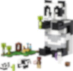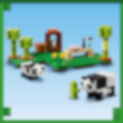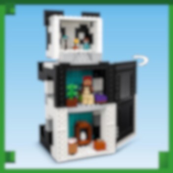 Als je van Minecraft® panda's houdt, zul je dit pandahuis met 3 verdiepingen geweldig vinden! Open de achterkant om de verschillende kamers te bekijken, elk gevuld met coole accessoires voor creatief plezier. Zin in iets nieuws? Herbouw je pandahuis zodat de panda zit of op alle 4 de poten staat! Ga samen met een onderzoeker de bamboejungle in. Voer taart aan een panda en babypanda – maar kijk uit voor het skelet met de kruisboog!