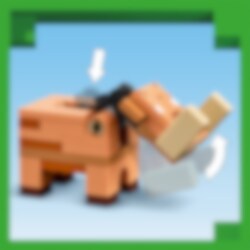 Stap door het Nether-portaal en kom uit bij de grens tussen het Helrode bos en de Basalt Deltas. De Minecraft® set Hinderlaag bij het Nether-portaal zit vol mobs om het tegen op te nemen terwijl je tussen de bomen met paddenstoelen loopt: 2 magmakubussen, een hoglin die kopstoten uitdeelt en een Ghast die schijven uit zijn bek schiet. Wees voorzichtig: als de Ghast je portaal beschadigt, zit je misschien voor altijd vast in de Nether!
