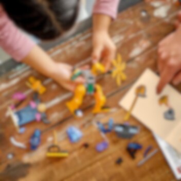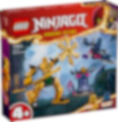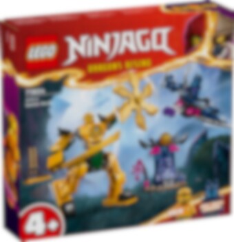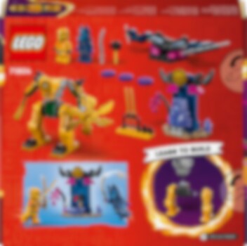 Met het ninjaspeelgoed Arins strijdmecha (71804) kunnen kinderen vanaf 4 jaar leren bouwen terwijl ze hun ninjahelden helpen om hun drakenvrienden te redden. Dit rollenspel-actiespeelgoed bevat een indrukwekkende mechafiguur die kinderen inspireert om spannende avonturen uit seizoen 2 van de tv-serie NINJAGO® Dragons Rising na te spelen. Deze LEGO® set is inclusief 2 minifiguren: Arin met een katana en een Wolvenmasker strijder met een zwaard. Arin past in de verstelbare mechafiguur die een groot zwaard en een draaiend mes vasthoudt, terwijl de Wolvenmasker strijder kan vliegen in een zweefvliegtuig met verstelbare vleugels, een schijfschieter en 2 speren. Er is ook een bouwbare kristallen grot met daarin de Hamer van Verbrijzeling en een wapenrek met 2 gouden katana's. Dit ninjaspeelgoed is ontworpen om kinderen vanaf 4 jaar het plezier van bouwen met LEGO stenen te laten ervaren. De set bevat een startsteen: een gedeeltelijk gebouwde basis waarmee kinderen snel en vol vertrouwen kunnen bouwen.