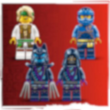 Werk samen met Jay en Meester Lloyd en neem het op tegen 2 leden van het Wolvenmasker leger aan de rand van het Schaduwbos. Stap in het mechapak en ga de strijd aan met een groot gouden zwaard en 2 krachtige noppenschieters. Pas op! Het gemene duoheeft een kruisboog en gevaarlijke klauwen! Ze willen dat de kwaadaardige Lord Ras aan de macht komt. Jij bent de enige die ze kan tegenhouden!