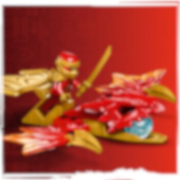 Jongens en meisjes vanaf 6 jaar kunnen avonturen uit seizoen 2 van de tv-serie NINJAGO® Dragons Rising naspelen met de LEGO® bouwset Kai's rijzende drakenaanval (71801). Kinderen zullen het geweldig vinden om het eerste LEGO NINJAGO drakenactiespeelgoed ooit te bouwen voordat ze op de gouden staart van de draak slaan en kijken hoe deze in actie komt. Deze speelset wordt geleverd met 2 minifiguren: Rijzende draak Kai met een katana die op de bouwbare actiedraak kan rijden en een Wolvenmasker bewaker met een kruisboog. Kinderen kunnen confrontaties naspelen tussen deze LEGO NINJAGO personages om een blauw drakenkrachtelement te bemachtigen uit de verstelbare bek van de draak. De rest van het LEGO NINJAGO assortiment bouwbaar ninjaspeelgoed omvat mecha, voertuigen en tempels, zodat fans verhalen kunnen naspelen met hun helden (sets worden apart verkocht). Elk model kan worden gemaakt met behulp van de LEGO Builder app, die jou en je kind begeleidt op een eenvoudig en intuïtief bouwavontuur.