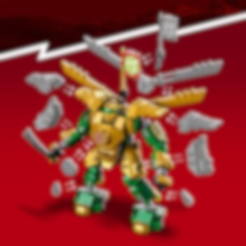 Kinderen van 6 jaar en ouder zullen het geweldig vinden om van alles over de fantasiewereld van LEGO® NINJAGO® te leren door te bouwen en spelen met Lloyd's Mech Battle EVO (71781). De speelset bevat 2 verstelbare mecha, beiden voorzien van coole wapens voor spannende confrontaties. Kinderen kunnen Lloyd's mecha versterken met een gouden harnas en vleugels om hem aan de overwinning te helpen. Cool speelgoed voor kinderen – met een extra beloning! Deze LEGO NINJAGO duelset wordt geleverd met 2 minifiguren: Gouden Lloyd en zijn tegenstander Bottenstrijder, die in de cockpits van hun verstelbare mecha kunnen worden geplaatst om epische confrontaties aan te gaan. Als ze in de uitdaging slagen, worden kinderen beloond met een verzamelvaandel voor Doorzettingsvermogen. Een leuke digitale ervaring voor LEGO fans Laat de LEGO Builder app jou en je kind begeleiden tijdens het eenvoudige en intuïtieve bouwavontuur. Zoom in en draai modellen in 3D, bewaar sets en houd je voortgang bij.