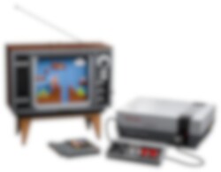 Beleef de klassieke gameplay van Super Mario Bros. opnieuw met dit coole LEGO® Nintendo Entertainment System! Plaats de Game Pak in de van stenen gebouwde console. Draai aan de hendel van de retro-tv om de 8-bit Mario over het scherm te laten lopen. En zet LEGO® Mario (figuur niet inbegrepen) in de opening aan de bovenkant zodat hij reageert op de vijanden, obstakels en power-ups op het scherm terwijl het themadeuntje van de originele game wordt afgespeeld!