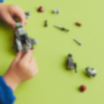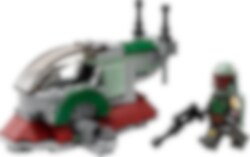Bouw het beroemde sterrenschip van Boba Fett en bundel je krachten met de legendarische premiejager! Spring in de cockpit en begin aan een geweldig avontuur. Klap de vleugels uit voor de vliegmodus en richt de knipschieters op vijandelijke starfighters. Land op Tatooine en verken de planeet met behulp van het jetpack. Houd Boba's blaster bij de hand, maar onthoud: Het is beter te heersen vanuit respect dan vanuit angst!