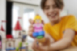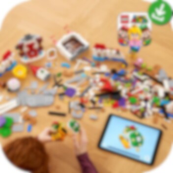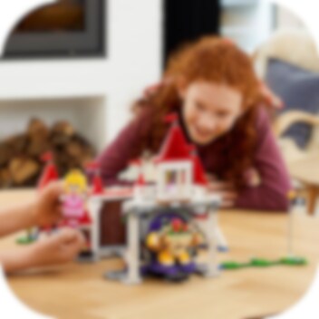 Met de Uitbreidingsset: Peach' kasteel (71408) kunnen kinderen een bekende locatie toevoegen aan hun LEGO® Super Mario wereld. Spelers kunnen op allerlei manieren digitale munten verdienen met hun interactieve LEGO® Mario, LEGO® Luigi of LEGO® Peach figuren (niet inbegrepen). De set bevat een troonzaal met een draaimuur waarachter Bowser verstopt zit, een glas-in-loodraam met Peach erop, een schilderij van een Bob-omb met een actietag, een taart met daarin een Goomba, een Speciale Buis: Peach' kasteel, een tijdblok, 'ingestorte brug', fruitschaal met paars fruit en meer. (Let op: je hebt de startset 71360, 71387 of 71403 nodig.) Deel het plezier Deze set is een topcadeau voor kinderen vanaf 8 jaar met 5 Super Mario personages om alleen of samen mee te spelen. Download de LEGO Super Mario app voor de bouwinstructies. Onbeperkte levels Met de LEGO Super Mario startsets en uitbreidingssets kunnen fans hun eigen levels maken, uitbreiden en ombouwen voor urenlang spelen en munten verzamelen.
