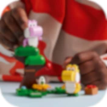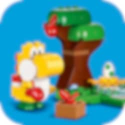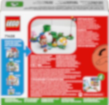 Laat het rollenspel beginnen met Yoshi's eigenaardige woud met dit LEGO® Super Mario bouwspeelgoed voor kinderen (71428) vanaf 6 jaar. Dit coole cadeau voor gamers bevat roze Yoshi en gele Yoshi LEGO Super Mario speelgoedfiguren, plus een bouwbaar bos met een appelboom en een Yoshi-ei element. Help de Yoshi's om appels uit de boom te verzamelen, doe ze in een mand en zorg voor het Yoshi-ei. Voeg voor interactief spelen een LEGO® Mario, LEGO® Luigi of LEGO® Peach figuur toe uit een LEGO Super Mario startset (71360, 71387 of 71403 – elk apart verkrijgbaar). Als een interactieve figuur op de actietag springt, verschijnt er een ei op het digitale scherm. Wieg de figuur als een baby om het digitale ei uit te broeden en kijk welke Yoshi jeop het buikscherm krijgt. Spring en draai dan om de stem van de Yoshi te activeren. Je vindt de bouwinstructies voor deze uitbreidingsset in de LEGO Super Mario app, die ook inspiratie biedt voor verschillende manieren om te bouwen en te spelen.