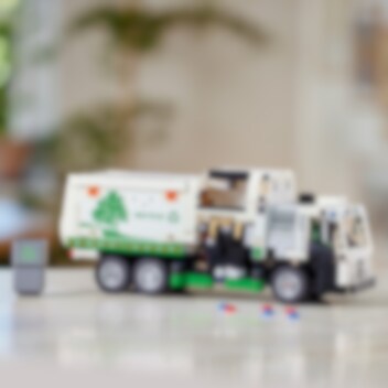 Help de stad schoon te houden met de LEGO® Technic Mack® LR Electric vuilniswagen. De echte Mack truck wordt aangedreven door elektriciteit, waardoor het een groenere manier is om afval te verzamelen. Klaar om deze modelversie op de proef te stellen? Open de deuren om toegang te krijgen tot de bestuurderscabine en stuur de truck vervolgens naar de juiste positie. Gebruik de zijlader om de vuilnisbakken te pakken, op te tillen en om te kiepen voordat je doorgaat naar je volgende locatie.