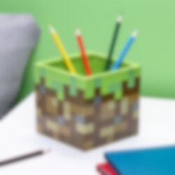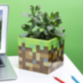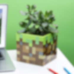 Mooie pot met een korrelig grasblok uit het populaire videospel Minecraft. Kan gebruikt worden als pennenstandaard of waarom plant je er geen coole plant in. Als je de pot gaat gebruiken om in te planten, gebruik dan alleen kamerplanten omdat de pot geen afvoergat heeft.
