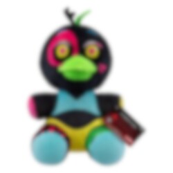 Mooie knuffel dat de kip Chica voorstelt in felle neonkleuren uit de game Five Nights at Freddy's: Security Breach. Past perfect bij je collectie knuffels.