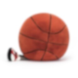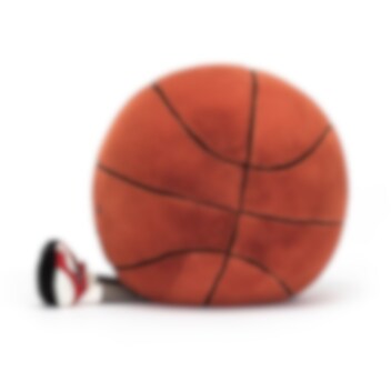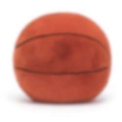 Hier is een speelse en sportieve knuffel in de vorm van een vrolijke basketbal met heerlijk zachte, donker oranjebruine vacht en het kenmerkende patroon van zwarte lijnen in vilt. Een charmant personage met grappige beentjes in witte sokken en opvallende stijlvolle gymschoenen in rood, wit en zwart imitatiesuède met geborduurde details. Een heerlijk knuffelige vriend of mascotte die ideaal is voor iedereen die van basketbal houdt en perfect om mee te vieren wanneer je favoriete team wint. Als het vuil wordt, kan het in de machine worden gewassen op 30°C, fijnwas en opgehangen om te drogen.