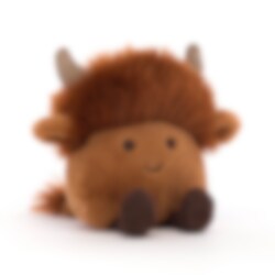 Knuffelig, schattig en een tikkeltje eigenzinnig is dit kleine Schotse Highland-koeienbroodje, met een punkkapsel, zachte kleine hoorntjes, een kleine getufte staart, een vrolijke kleine glimlach en schattige beentjes in donkerbruin corduroy. Een bemoedigend en knuffelig maatje voor uitstapjes of de perfecte mascotte voor op je bureau. Handwas indien nodig.