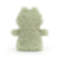 Een schattige en pluizige kleine kikker met een charmant rond lichaam. De licht ruige vacht heeft een heerlijke lichtgroene tint en in het grappige gezicht zie je een vrolijke kleine glimlach. Deze kleine springende vriend houdt van knuffelen en met zijn schattige kleine armen, knuffelig zachte lichaam en schattige uitdrukkingen, zeggen niet veel mensen nee tegen dat. Deze kleine schat kan bijna overal mee naartoe op het volgende avontuur of een rustig knuffelmoment en wil graag helpen troosten en ondersteunen wanneer dat nodig is. Handwas en indien nodig plat drogen of ophangen.