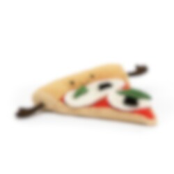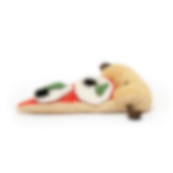 Een leuke en knuffelige pizzapunt met toppings in lekkere kleuren die je zeker kunnen opvrolijken. Een stuk zachte tweekleurige pizzabodem met een vrolijke glimlach op de rand, rijke rode tomatensaus, romige witte mozzarella en olijven en basilicumblaadjes in glad imitatiesuède en niet te vergeten de leuke armpjes in donkerbruin corduroy voor extra expressieve gebaren - een echte premium pizza. En wat een comfortfood! Handwas indien nodig.