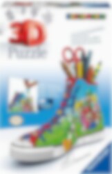 3D-puzzel met een Super Mario-afbeelding op een sneaker die als pennenbak op je bureau kan worden gebruikt. De 3D-puzzel is 21 x 12 x 8 cm groot. Voor deze puzzel is geen lijm nodig, gewoon bouwen.