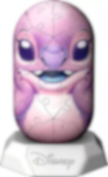 Bouw je eigen figuur met de Ravensburger 3D Puzzel - Hylkies Angel 54 stukjes. De puzzel stelt het roze personage Angel voor uit Disneys Stitch in de vorm van een capsule. De stukjes zijn gemaakt van plastic en op de achterkant genummerd om het samenstellen te vergemakkelijken.