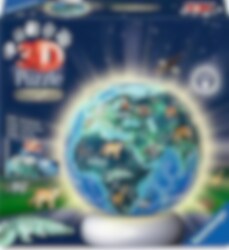 Laat kinderen de wereld verkennen met de Ravensburger 3D Puzzel - Wereldbol met nachtlicht 72 stukjes. De puzzel is versierd met kleurrijke dieren uit alle hoeken van de aarde en verandert na het bouwen in een sfeervolle nachtlamp. Dankzij de slimme Easy Click-technologie passen de buigzame kunststof stukjes precies op elkaar, zonder lijm.