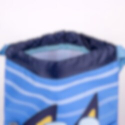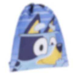 Deze kleurrijke gymtas met afbeeldingen uit de tv-serie Bluey is perfect voor kinderen die van avonturen houden met de blauwe veedrijvershond.