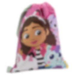 Deze kleurrijke gymtas met een motief van Gabby's Dollhouse is perfect voor kinderen die van avonturen houden met Gabby en haar kattenvrienden.