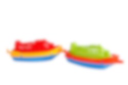2 kleurrijke boten die veel plezier zullen garanderen in het bad of het zwembad. De boten kunnen aan elkaar worden gekoppeld. Grootte: 13 x 5 cm.